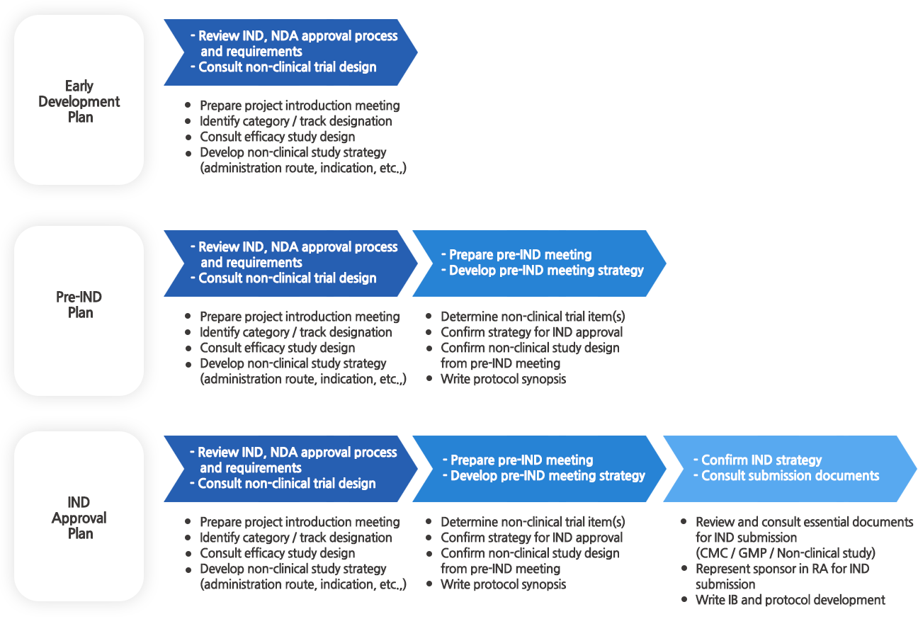 of IND and NDA through GLP-certified tests and strategic analysis.
